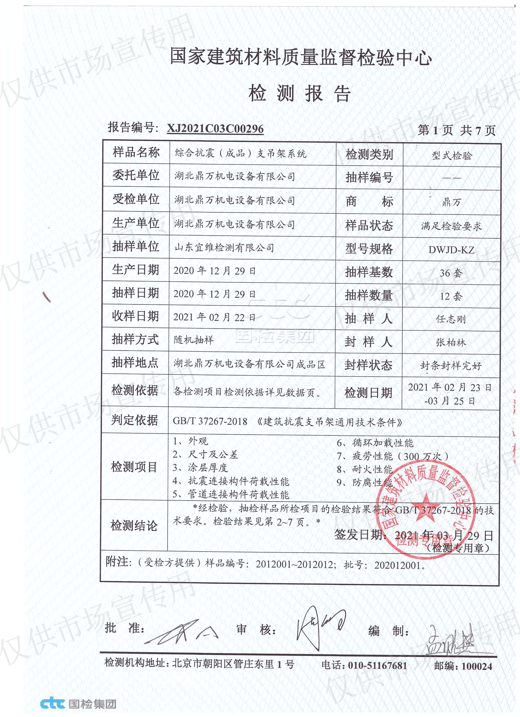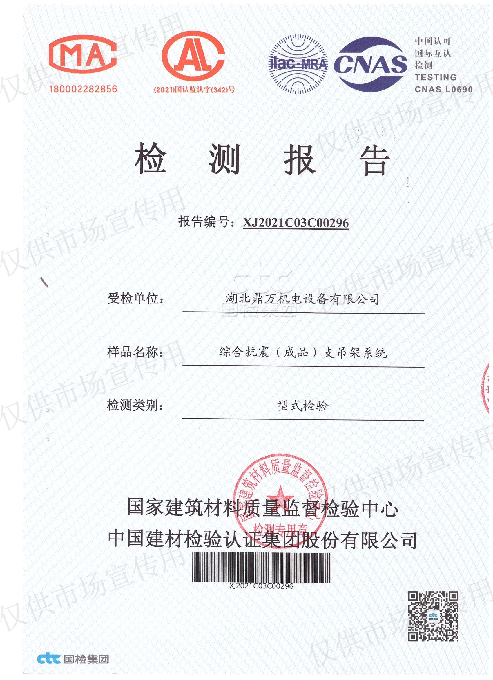 國家建材質(zhì)檢中心型式檢驗報告